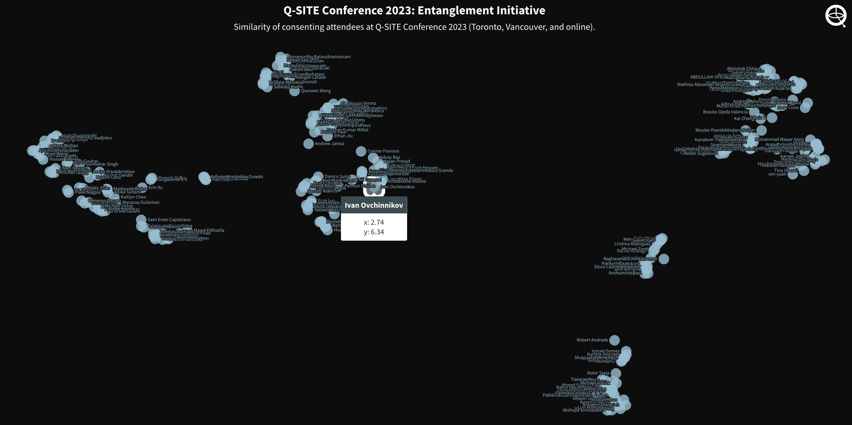 [Website]Developed an interactive data visualization in a cross-functional team to group up similar consenting attendees of a quantum conference using text embeddings and applying dimensionality reduction on survey data.