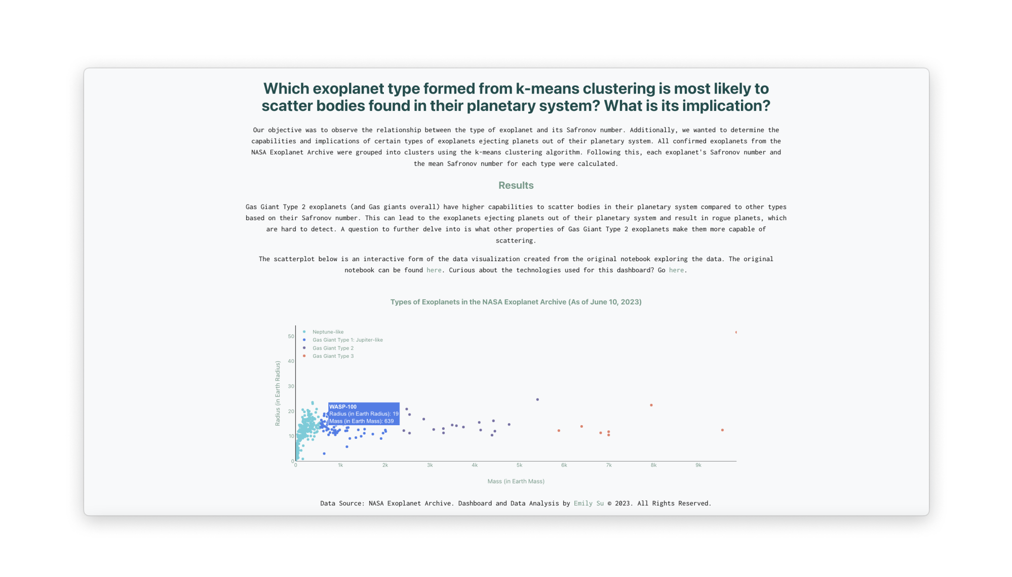 [GitHub Repo] [Website]Classified confirmed exoplanets from the NASA Exoplanet Archive using the k-means clustering algorithm, resulting in 3 potential subtypes being identified. Calculated the Safronov number for each exoplanet type to determine its relationship with planetary ejection.
