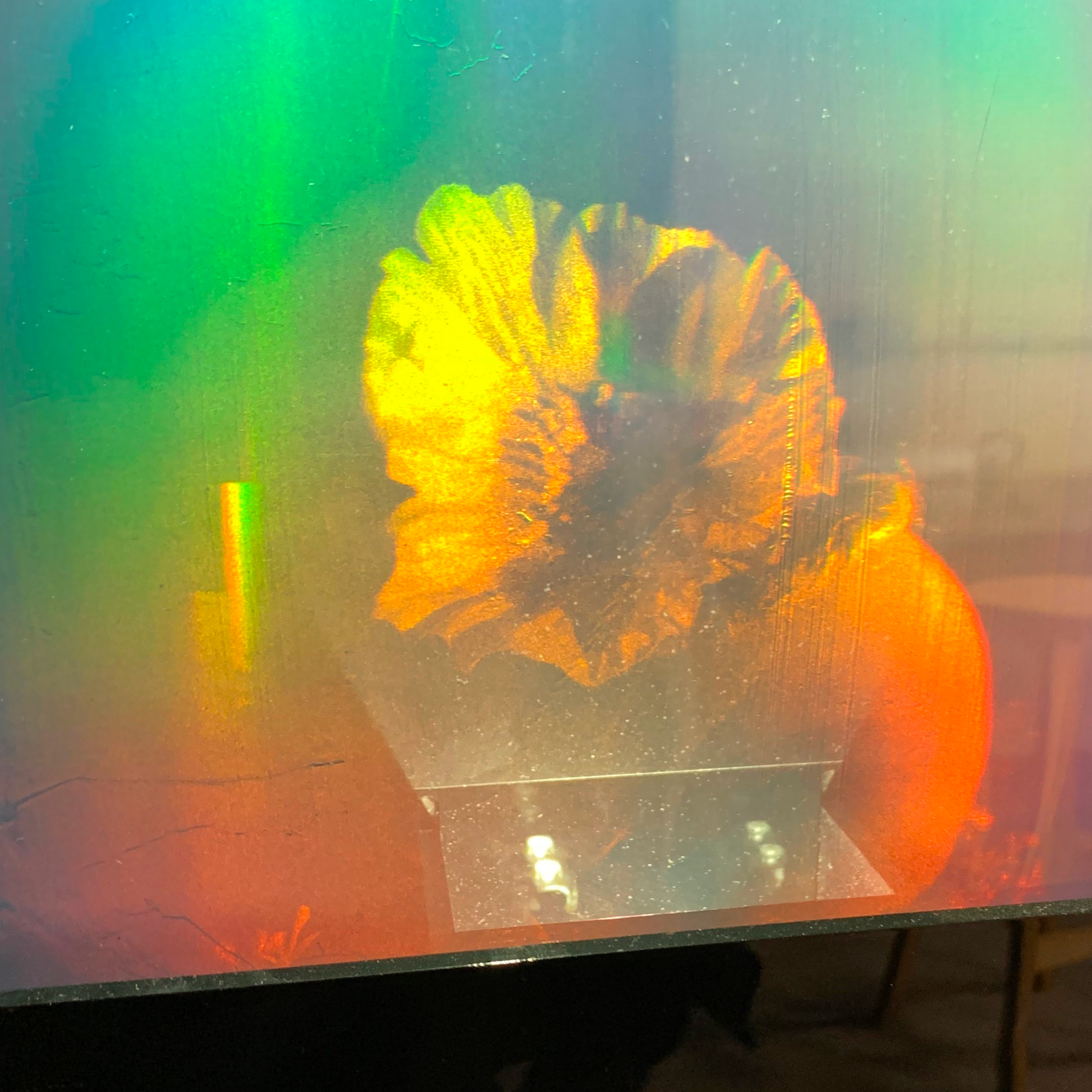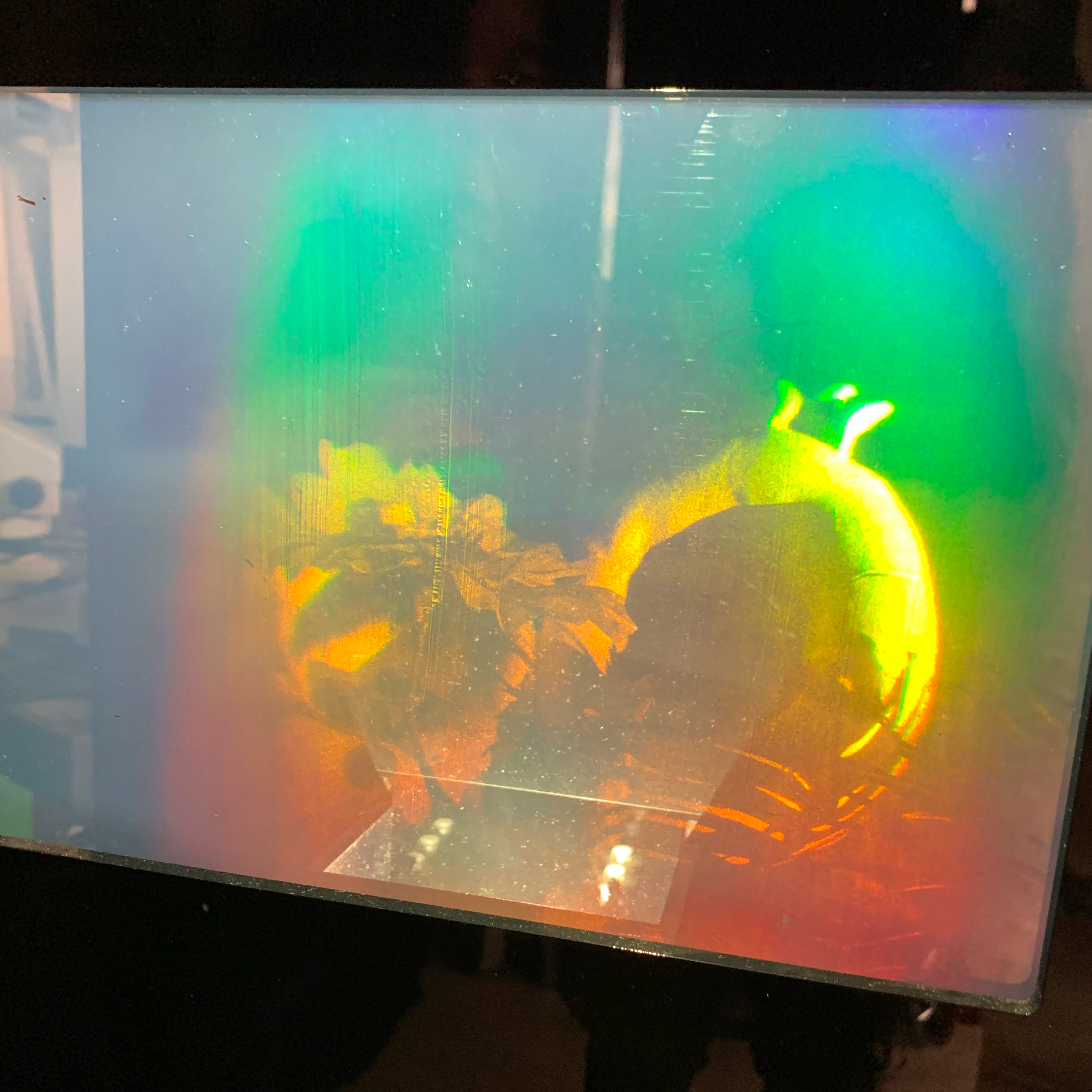 Persephone is a rainbow hologram portraying the time of Greek mythology's Persephone on Earth and the Underworld and it was created in a team of 2. A master hologram was initially produced with a class 3B green laser to capture the scenes of the flower field and the underworld onto holographic film. Next, the master hologram was used to record our rainbow hologram.