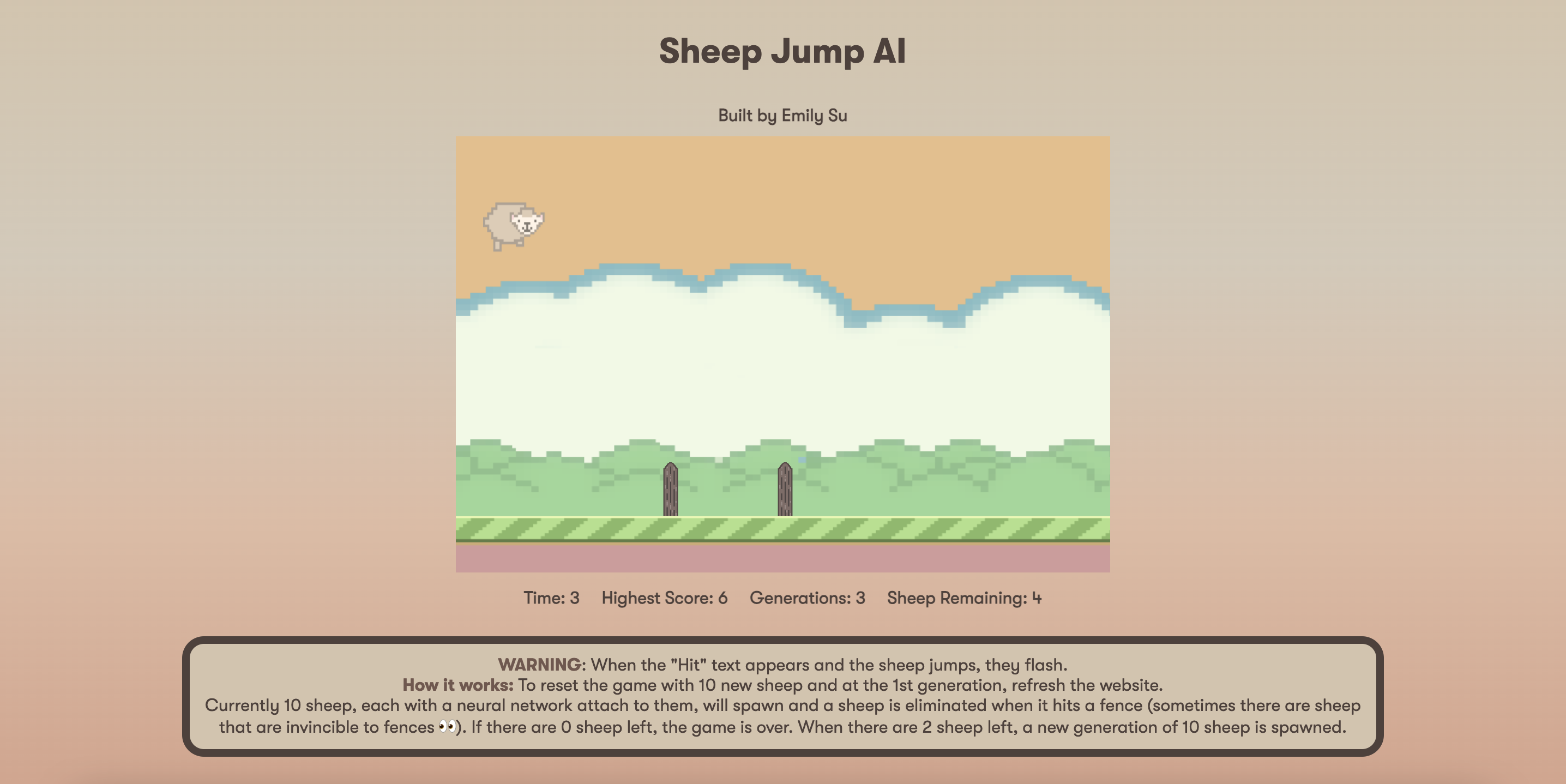 [GitHub Repo]An AI that plays a game where sheep—each being a neural network—jump to avoid fences and learns using the genetic algorithm.