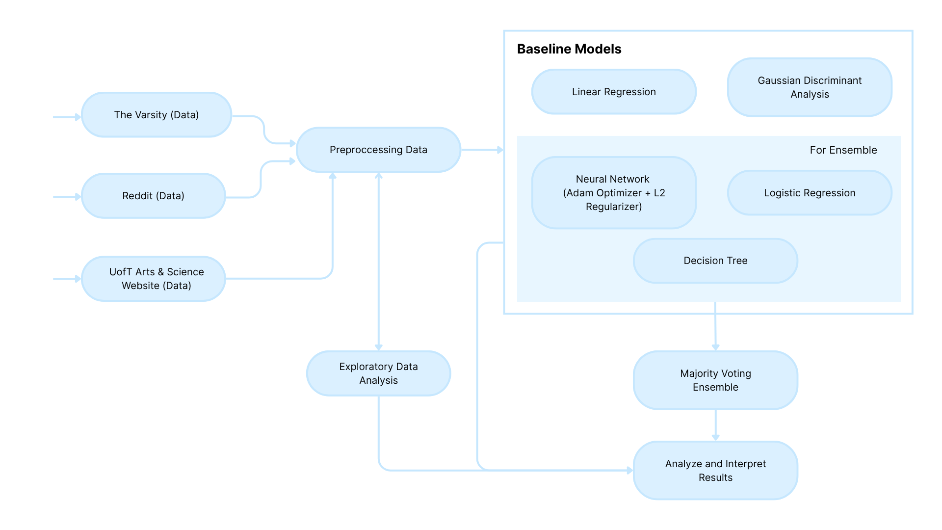 [Paper] [GitHub Repo]Machine learning paper using models such as a multilayer perceptron neural network with Adam optimizer, logistic regression, linear regression, decision tree, and Gaussian Discriminant Analysis, as well as a majority voting ensemble to understand factors influencing whether or not a UofT course gets recommended or not by students.